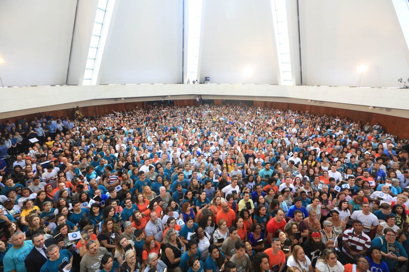 (Foto: Thiago Mendes)Brasília, DF – O público superlotou o Plenário José de Paiva Netto, no Parlamento da Fraternidade Ecumênica (o ParlaMundi da LBV), cantando, se emocionando e bradando a "Volta Triunfal de Jesus".