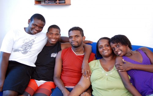 Photo de famille — De gauche à droite, Igor, Aguilar, Áliton, la mère Eliana et Beatriz. Toute la famille a trouvé dans la LBV le soutien nécessaire pour vivre une pleine citoyenneté.