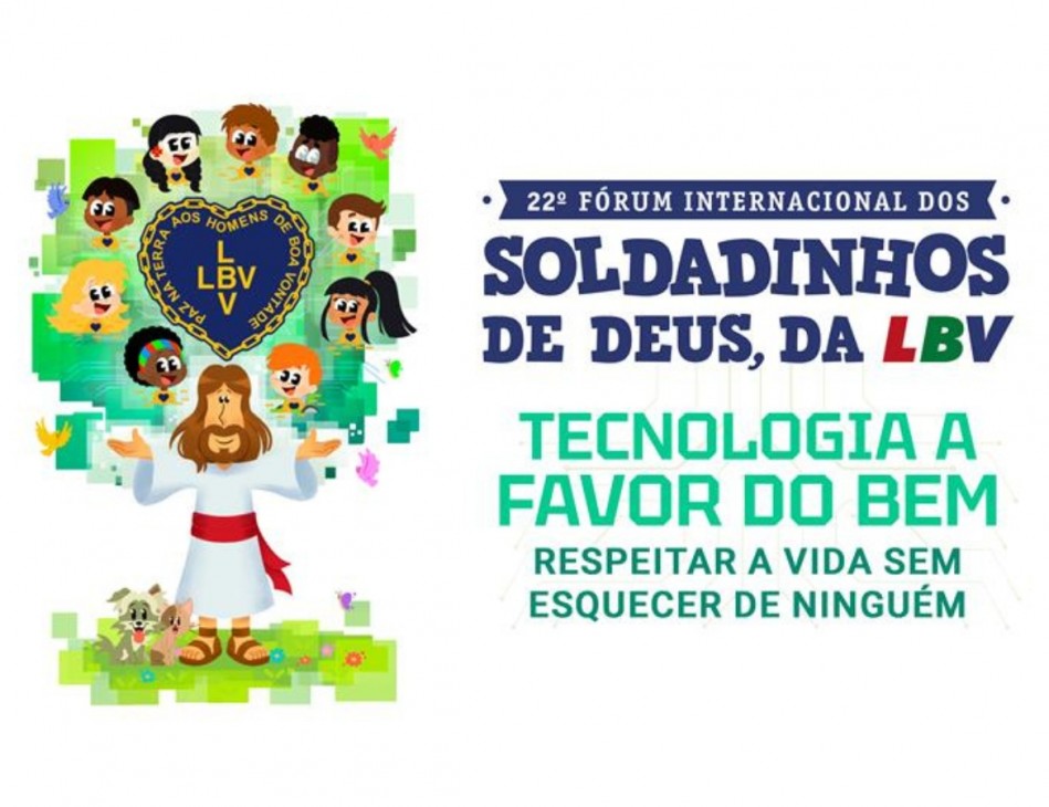 "Tecnologia a favor do Bem: respeitar a Vida sem esquecer de ninguém!” é o tema do 22º Fórum Internacional dos Soldadinhos de Deus, da LBV, como carinhosamente são chamadas as crianças na Legião da Boa Vontade. O evento ocorre neste sábado, 29, e tem como objetivo fomentar o protagonismo infantojuvenil, com o apoio da família, da escola, dos serviços de convivência e o necessário fortalecimento de vínculos e da comunidade visando à construção de um mundo melhor para todas as pessoas.