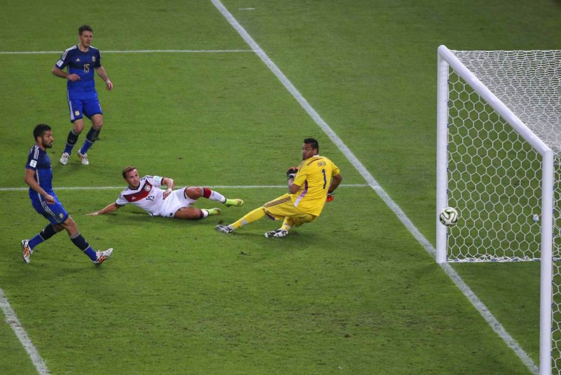 No início do tempo extra, a Alemanha era mais ofensiva, mas foi a Argentina que perdeu chance incrível. Palácio dominou na área e tentou encobrir Neuer, que fechou o ângulo. Enquanto Schweinsteiger, Ozil e companhia procuravam jogar futebol, o time de Messi apelava para a violência. Então, a Alemanha, finalmente, aos 7 minutos do segundo tempo da prorrogação, abriu o placar. Schürrle fez o cruzamento para Götze, que dominou no peito e, sem deixar a bola cair, fez um golaço. Era o gol do título! Alemanha é tetracampeã mundial!
