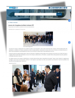 Visita dos jovens do Projeto Geração Maré foi destaque no site oficial do Supremo Tribunal Federal.