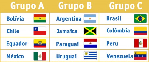 Nesta sexta, 12, acontece o outro jogo do grupo, em Viña del Mar, o favorito México enfrenta a Bolívia, às 20h30, horário de Brasília. Conheça os grupos do torneio: