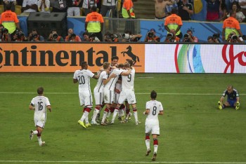 Jogadores da Alemanha comemoram o gol que garantiu a vitória da Seleção no Mundial 2014.