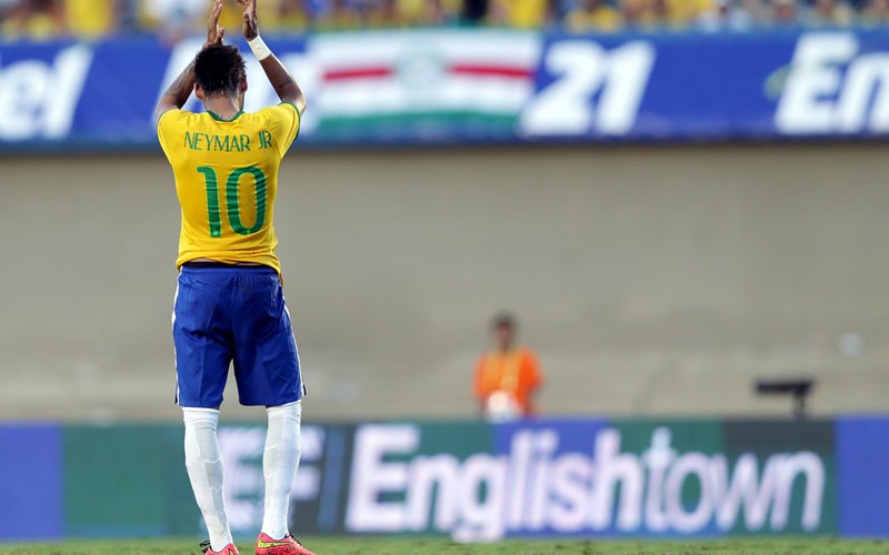 No Serra Dourada, Neymar comemora com a torcida bela atuação em amistoso contra o Panamá.