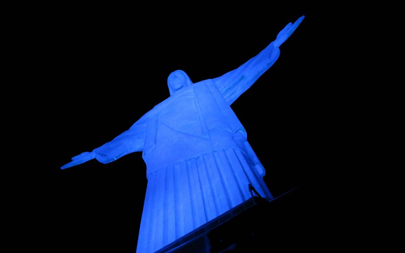 Cristo Redentor é iluminado de azul em campanha contra o tráfico de pessoas