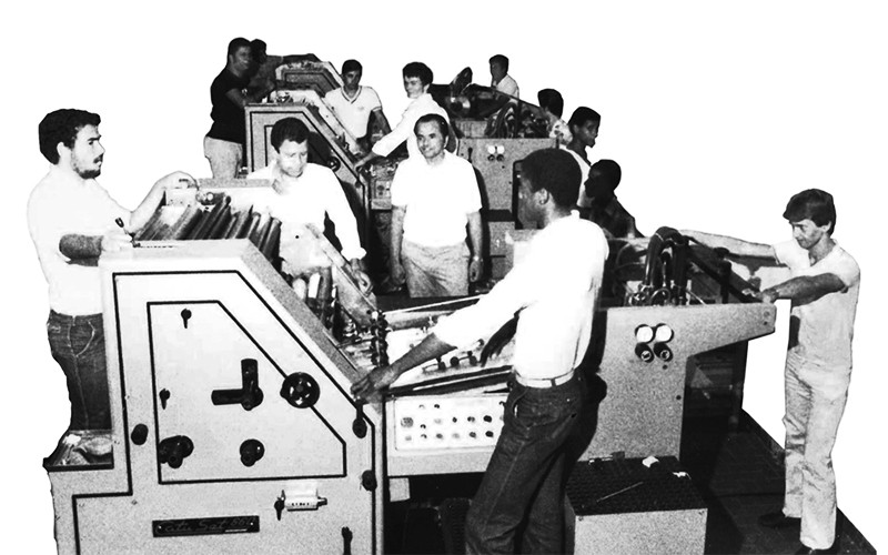 Equipe de colaboradores da LBV no bairro de Bangu, Rio de Janeiro/RJ, onde foi instalada a primeira gráfica Legionária. Em destaque, o coordenador das atividades na época, o veterano Legionário Edvaldo de Santana Pequeno.
