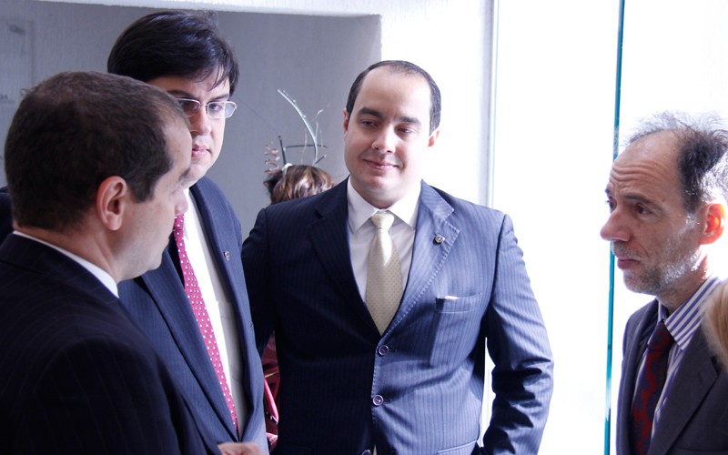 Da esq. para a dir.: doutor Pedro de Paiva, advogado da OAB-SP; Danilo Parmegiani, da LBV; Alziro Paolotti de Paiva, representante do diretor-presidente, José de Paiva Netto, na ocasião; e o doutor Alberto Padova, da ONU.