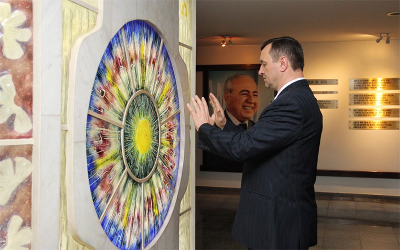 Há quase cinco anos no Brasil e dominando bem a língua portuguesa, o embaixador da Bielorrússia — país localizado no Leste Europeu — excelentíssimo sr. Leonid Krupets, depois de receber boas referências sobre o Templo da Boa Vontade (TBV), monumento mais visitado da capital federal, aproveitou a tarde da última sexta-feira, 26, para conhecer a Pirâmide de Sete Faces e todos os seus ambientes.