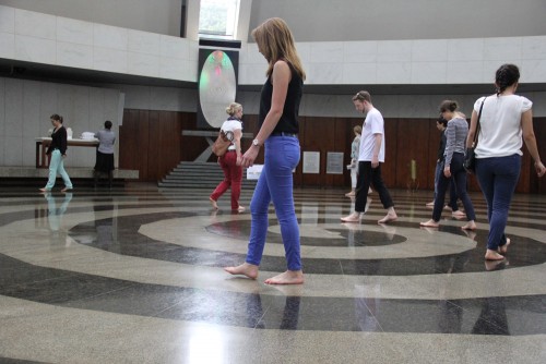 No Templo da Paz, os estudantes realizaram a caminhada pelo espiral.