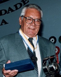 Na foto, o bicampeão mundial nas Copas de 1958 e 1962, Nilton Santos, recebe a láurea, na catergoria Esporte.