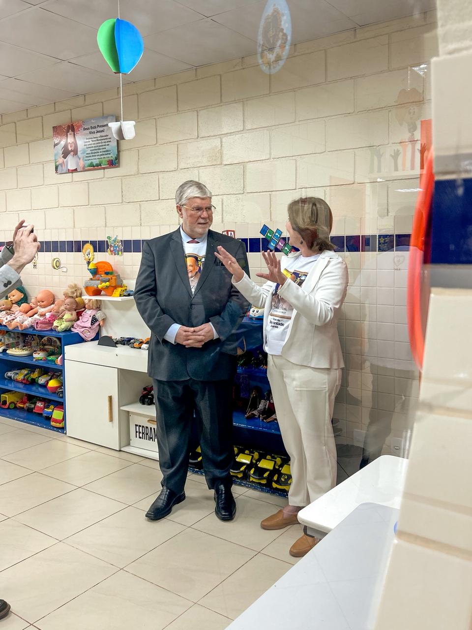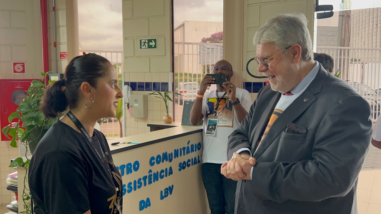 Ao adentrar à Escola de Educação Infantil Alziro Zarur e ao Centro Comunitário de Assistência Social da LBV, ele cumprimentou a equipe docente e em fraterna conversa valorizou a atuação pioneira da Instituição.