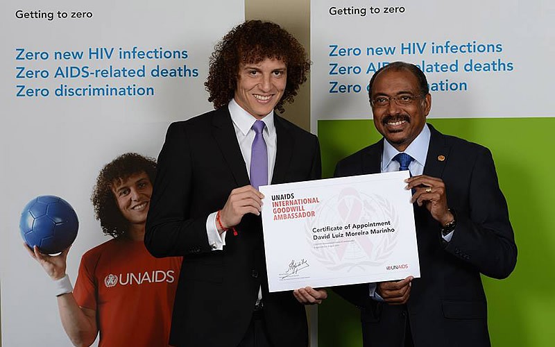 O zagueiro David Luiz da Seleção Brasileira foi nomeado Embaixador Internacional da Boa Vontade, do Programa Conjunto das Nações Unidas sobre HIV/Aids (Unaids). Para ajudar a promover luta contra o HIV, o jogador participa de campanha para alertar jovens sobre importância da prevenção da doença.