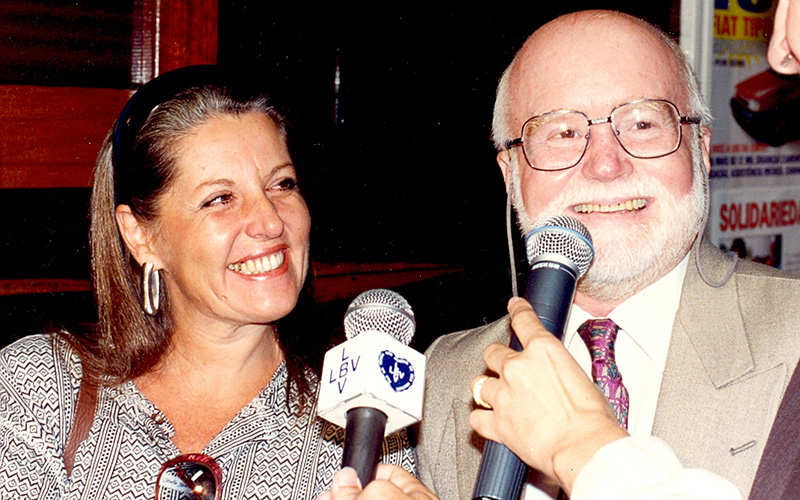 Japiassu e sua esposa, Marcia Lobo, durante visita ao Conjunto Educacional Boa Vontade, na capital paulista, em 1995.