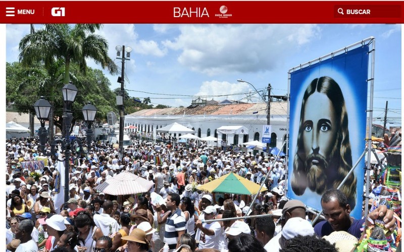 O evento, que se tornou no ano passado Patrimônio Imaterial Nacional, teve início às 8 horas, com um ato inter-religioso no Adro da Basílica de Nossa Senhora da Conceição da Praia. Após a cerimônia, o cortejo percorreu oito quilômetros pelas ruas da Cidade baixa até a Basílica do Senhor do Bonfim. “As pessoas reverenciavam a estampa e fotografavam, isso é muito emocionante. Jesus é um só e somos todos irmãos, isso a gente aprende na LBV”, afirmou a voluntária Aurilene Lins.