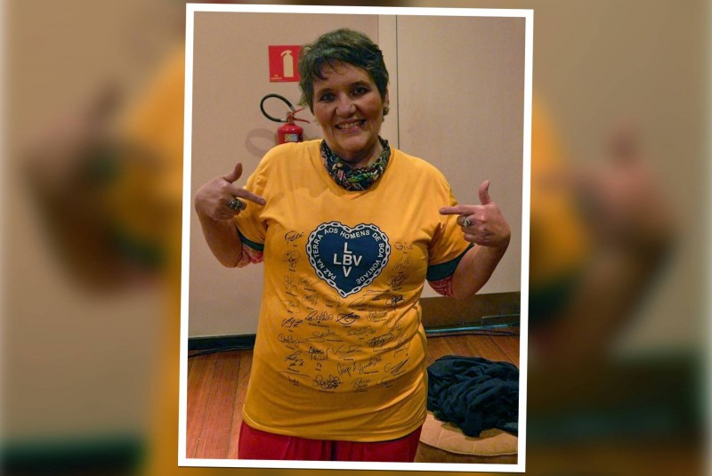 A cantora Ellen de Lima, que, aos 80 anos, continua se apresentando com regularidade em teatros, TVs e programas musicais em todo o Brasil, abraçou a campanha da LBV, vestindo a camiseta símbolo com a assinatura de dezenas de jogadores consagrados, como Pelé, Rivelino e Zico, entre outros ídolos do futebol. " Para mim é uma honra me unir a este Time da Solidariedade de tantos notáveis e fico feliz em ajudar muitas famílias carentes, com a venda da camisa da Copa", disse. Leia mais.