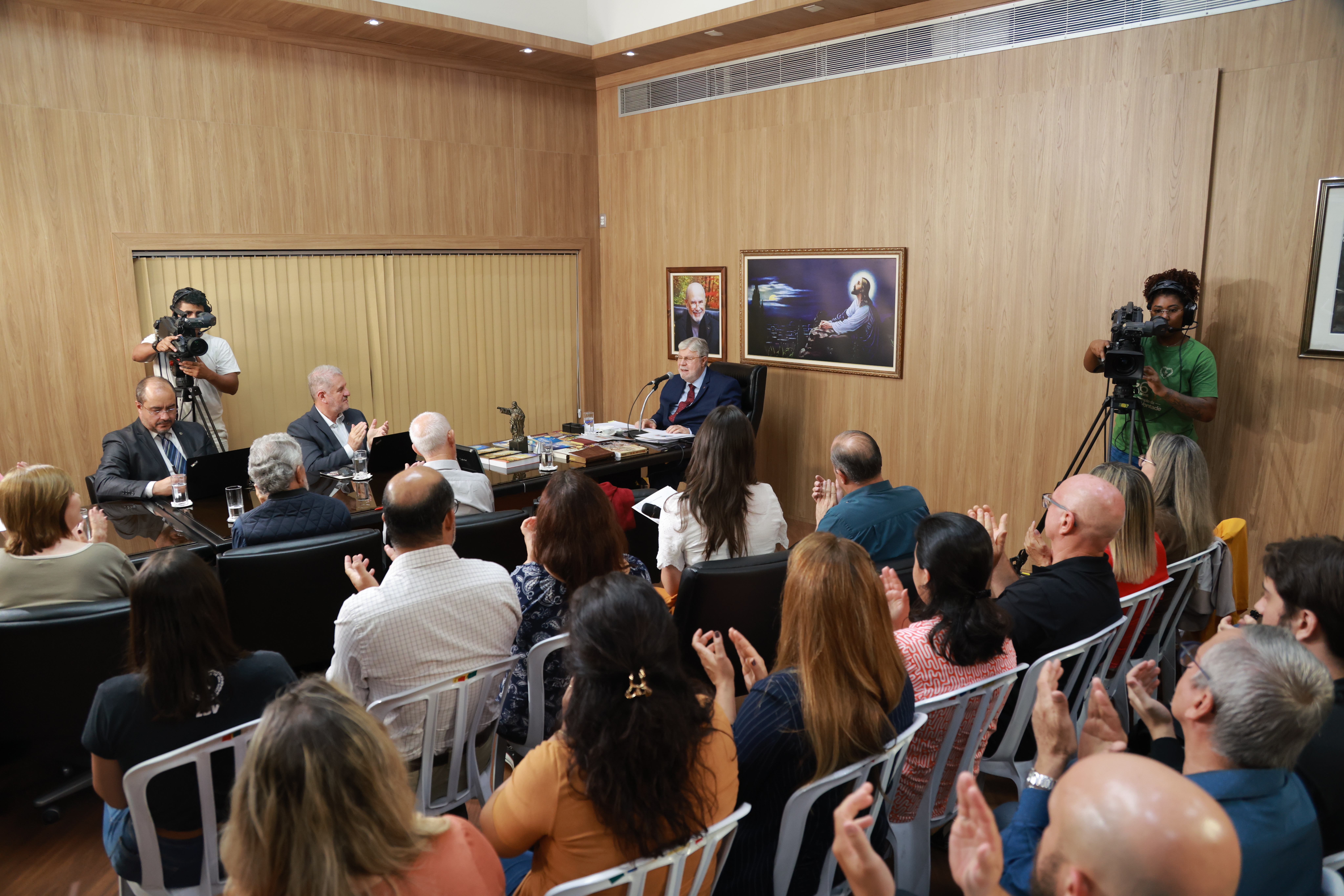 O Irmão Francisco Periotto também destacou a importância da Campanha dos Mantenedores da Comunicação 100% Jesus!, iniciativa essencial para fortalecer e manter viva a propagação da mensagem do Divino Amigo, por meio dos veículos de comunicação da Boa Vontade, levando conforto espiritual, esclarecimento e esperança a milhares de pessoas.
