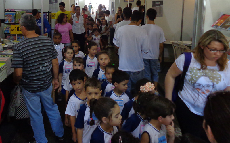 Meninas e meninos atendidos pela Legião da Boa Vontade (LBV) visitaram, nessa quarta-feira, 24, a Feira Literária. Na oportunidade, eles acompanharam uma divertida contação de histórias com Renata Amatto. Ela aguçou a imaginação dos pequeninos ao narrar o conto “A casa sonolenta”.(Foto: Fransinét Furtado)