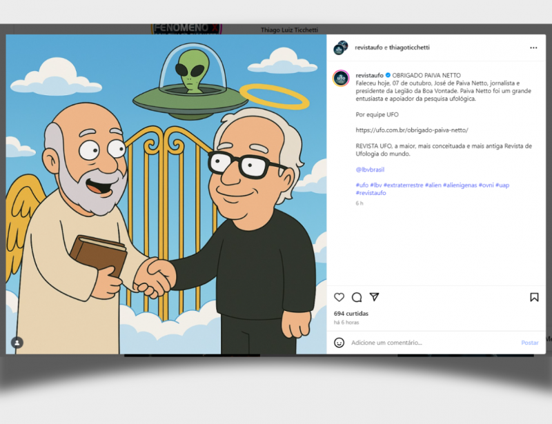 A equipe da Revista UFO, uma das mais respeitadas publicações sobre ufologia no Brasil e no mundo, prestou uma bela homenagem ao jornalista e escritor José de Paiva Netto (1941–2025), presidente da Legião da Boa Vontade, que retornou à Pátria Espiritual nesta terça-feira, 7.