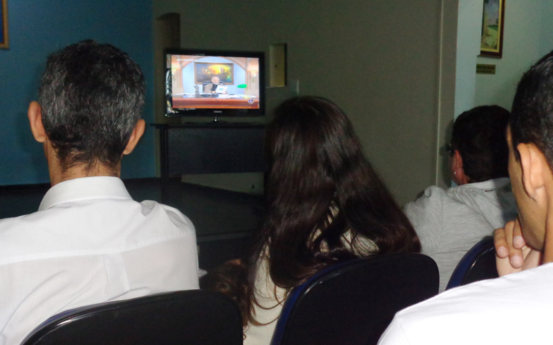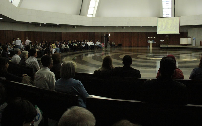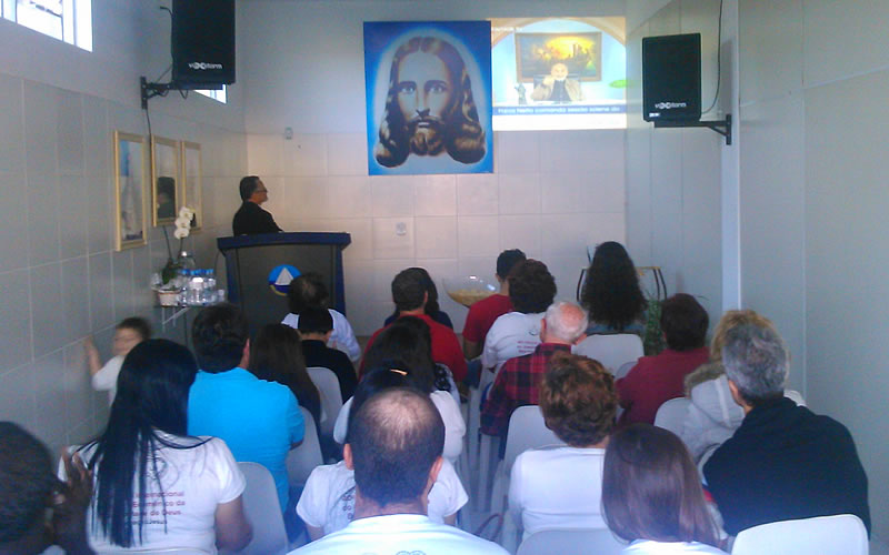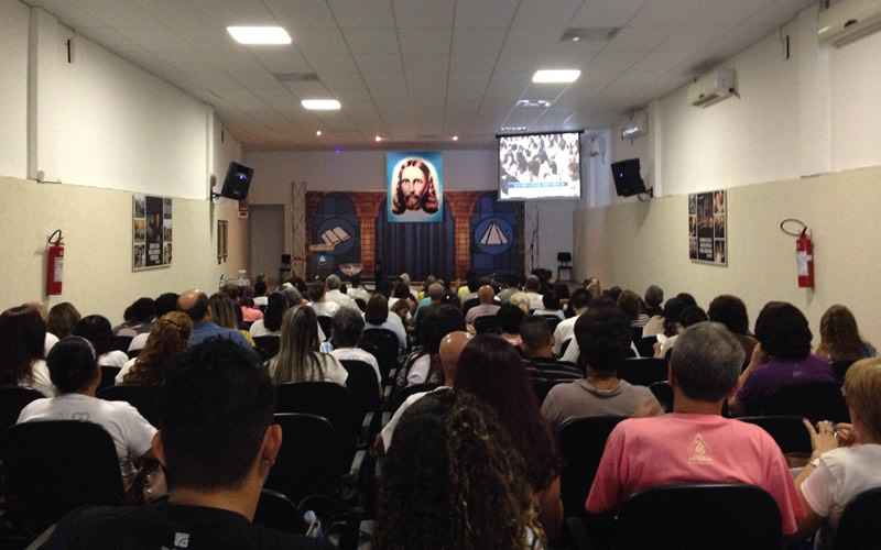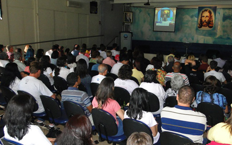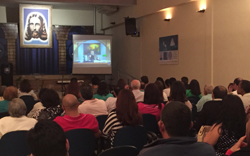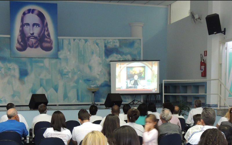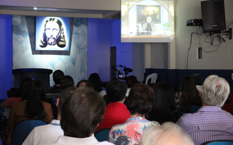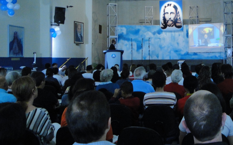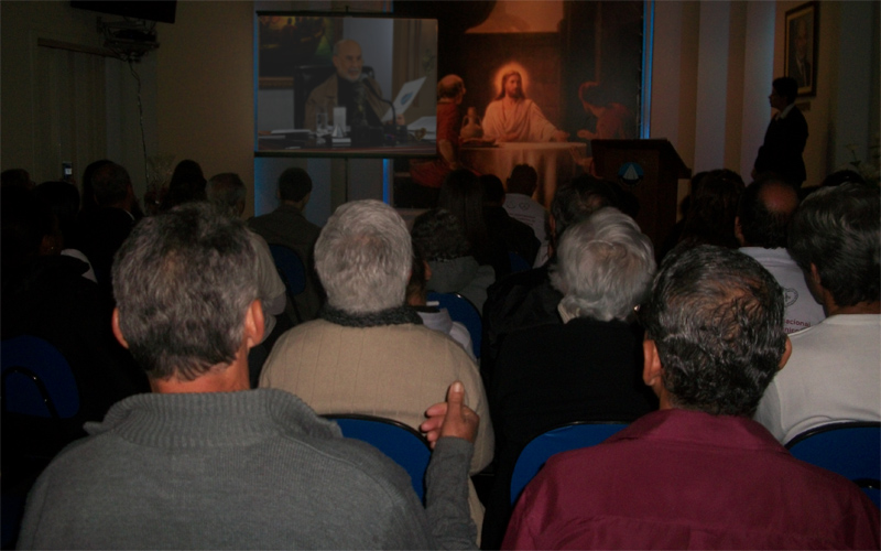 (Foto: Vivian R. Ferreira)BUENOS AIRES, ARGENTINA — Público acompanha a transmissão, via satélite, das palavras do presidente-pregador da Religião de Deus, do Cristo e do Espírito Santo, José de Paiva Netto.