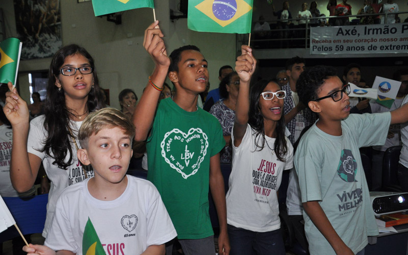 (Foto: Mariane Lebron)RIBEIRÃO PRETO, SP — Elevação espiritual e emoção marcam o discurso do líder da Juventude Ecumênica da Boa Vontade de Deus, comovendo os corações de todos que acompanham as suas palavras. (Foto: Mariane Lebron)FORTALEZA, CE — Em mensagem transmitida via satélite pela Super Rede Boa Vontade de Comunicação (Rádio, TV e Internet), o presidente-pregador da Religião do Terceiro Milênio, José de Paiva Netto, fala aos jovens de todas as idades sobre o enriquecedor conteúdo espiritual do livro “Jesus, a Dor e a origem de Sua Autoridade — o Poder do Cristo em nós”, que foi tema do Fórum da Juventude Ecumênica da Boa Vontade de Deus.. (Foto: Leandro Nunes)SALVADOR, BA — Vista parcial do público que superlotou a Igreja Ecumênica durante a sessão solene do 40º Fórum Internacional do Jovem Ecumênico da Boa Vontade de Deus. (Foto: Tatiane Oliveira)SÃO PAULO, SP — Público assiste à transmissão, via satélite, das palavras do presidente-pregador da Religião de Deus, do Cristo e do Espírito Santo, José de Paiva Netto. (Foto: Vivian R. Ferreira)SÃO PAULO, SP — As tradicionais bandeirinhas da Religião Divina e da LBV são erguidas pelos Jovens Legionários da Boa Vontade. (Foto: Vivian R. Ferreira)SALVADOR, BA — Durante a mensagem ecumênica e de Paz do Irmão Paiva Netto, jovens demonstram todo o entusiasmo e emoção. Na foto, vista parcial do público que superlotou a Igreja Ecumênica.