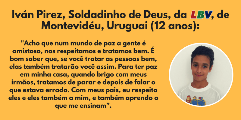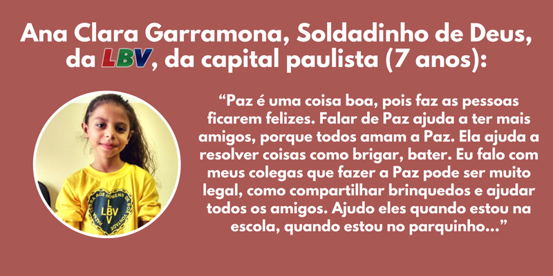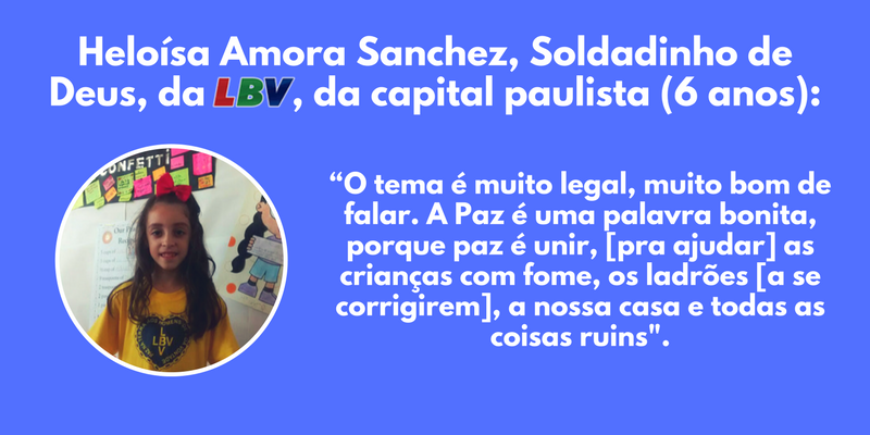 “Ah, mas esse é um tema muito difícil de trabalhar com criança”, alguém pode questionar. Que naaaadaa! Os Soldadinhos de Deus, da LBV, já são agentes pacificadores não do futuro, mas do presente! Separamos as palavras de alguns deles para você saber o que pensam sobre o assunto. Olha só que legal!