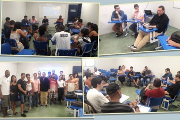 Os alunos assistiram, com muita atenção, as palestras dos jornalistas Sérgio Lobo, Flávio Amêndola e Marcos Carvalho.