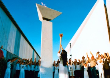 O monumento, inaugurado naquele ano, simboliza a chama da Solidariedade Ecumênica, que não deve jamais se apagar nos corações humanos.
