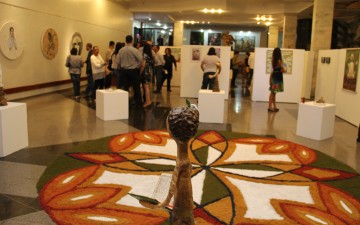 Em telas circulares, a artista plástica Regiane Rocha nos causa nobres sentimentos, como o amor, o acolhimento e a simplicidade